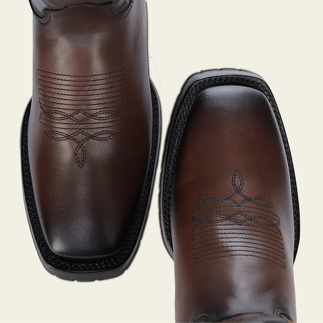 Experience the epitome of cowboy fashion with these Cuadra honey western cowboy rodeo cowhide leather boots. Made with genuine ostrich leather, these square toe dress boots boast the best handmade quality and lasting durability thanks to Goodyear welt construction. The leather lining and nonslip sole ensure comfort and safety, while the boots are proudly made in Leon, Mexico.