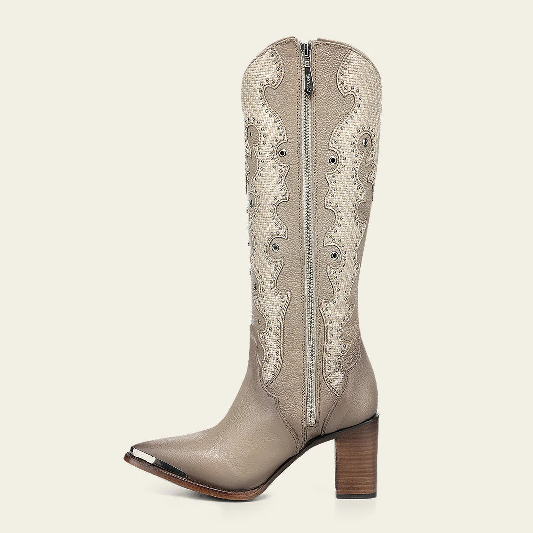 4I25RS - Cuadra beige western cowgirl cowhide leather ankle boots for women