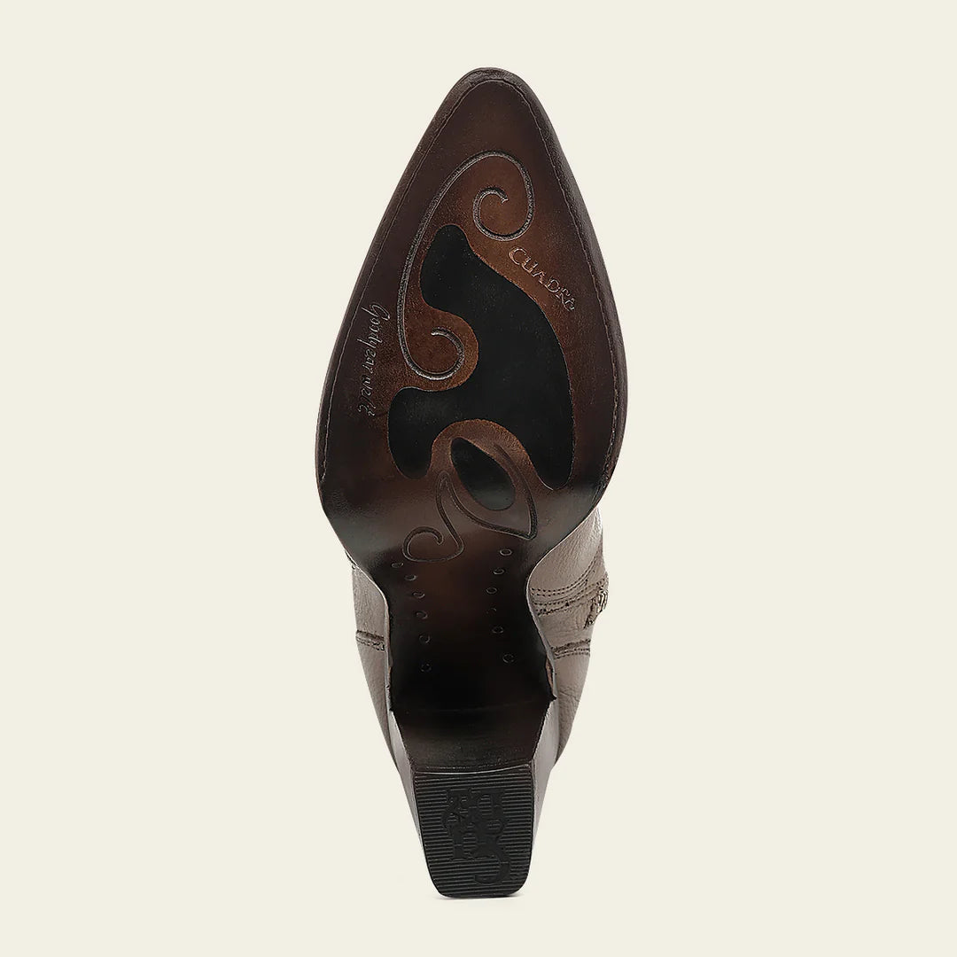 Introducing the Cuadra beige western cowgirl cowhide leather ankle boots for women! Experience the finest quality and craftsmanship with these stylish boots, featuring a pointy J toe and stunning studded design. Handmade with Goodyear welt construction, these boots boast a leather lining and nonslip sole for comfort and durability. Made in Leon, Mexico, these boots are a must-have for any fashion-forward individual. Add a touch of western charm to your wardrobe today!