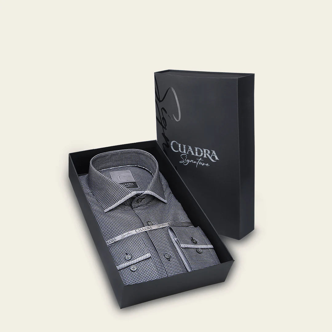As a firm believer in the value of quality fashion, you know that you can never have too many sharp shirts in your wardrobe. This sophisticated print features soft cotton fabric and a rich pattern that is sure to become your new favorite. The contrast button stitches and hand selected buttons add a touch of elegance, while the medium collar and classic fit provide a timeless look. Elevate your style with the Cuadra black casual fashion cotton shirt for men.