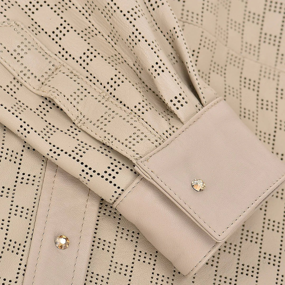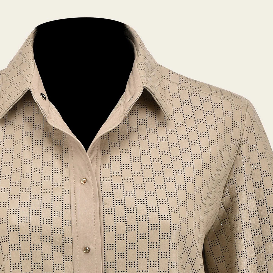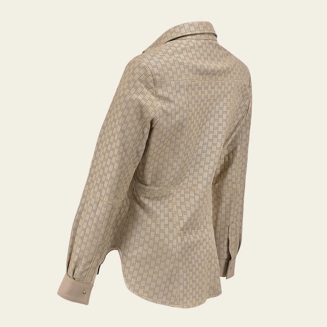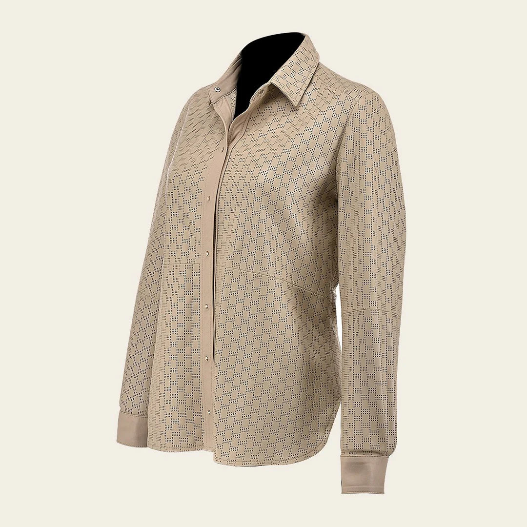 The camisole by Cuadra is a must-have for every woman's wardrobe. With its stylish collar and soft lambskin leather material, it's the perfect lightweight jacket for any autumn outfit. The hand woven details and zipper closure add a touch of western fashion to this versatile piece. Don't miss out on this fashion statement – order now!