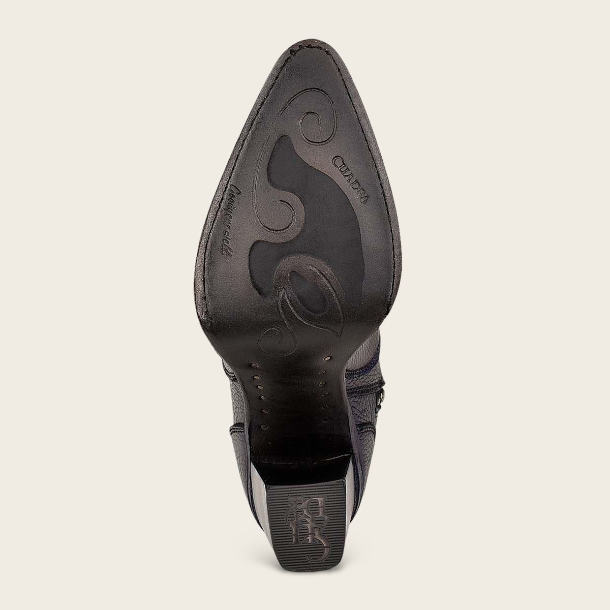 Introducing the Cuadra black western cowgirl cowhide leather ankle boots for women! Experience the finest quality and craftsmanship with these stylish boots, featuring a pointy J toe and stunning studded design. Handmade with Goodyear welt construction, these boots boast a leather lining and nonslip sole for comfort and durability. Made in Leon, Mexico, these boots are a must-have for any fashion-forward individual. Add a touch of western charm to your wardrobe today!