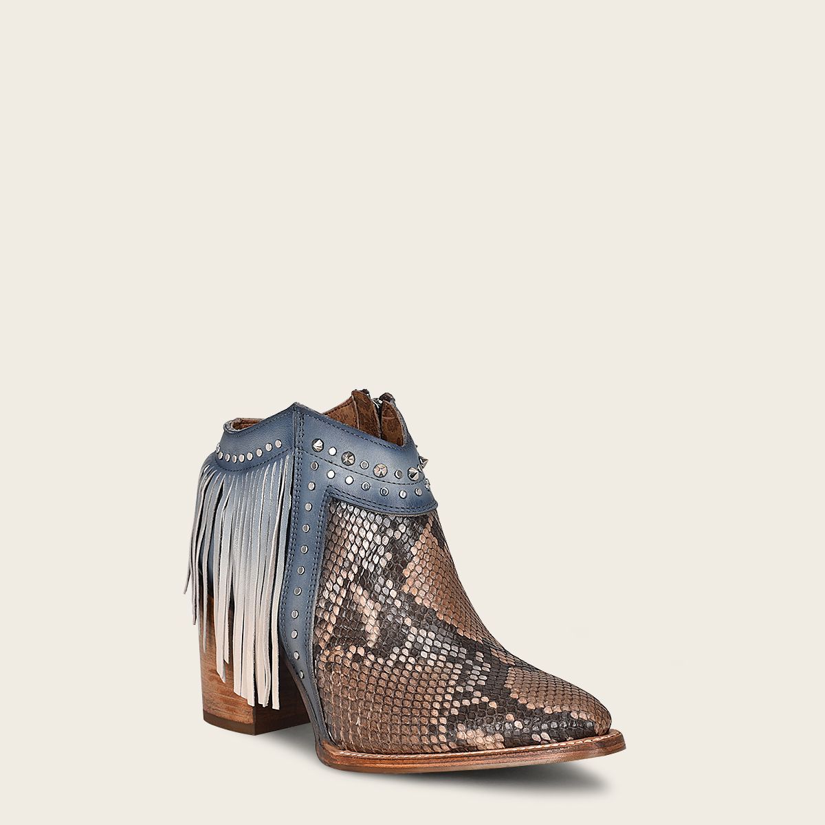 4Q10PH - Cuadra blue western cowgirl python skin ankle boots for women