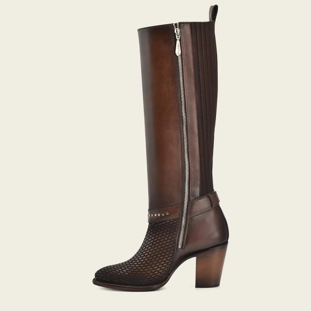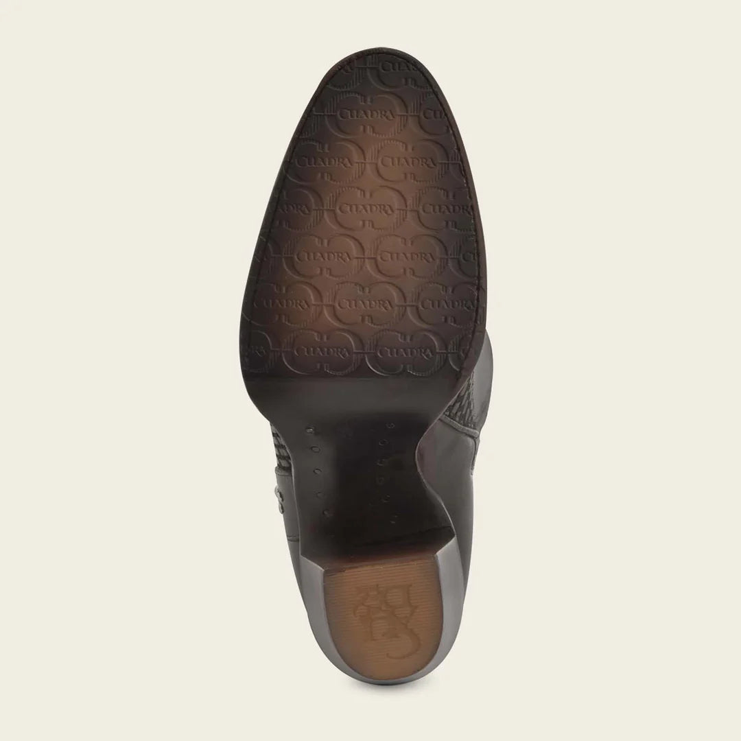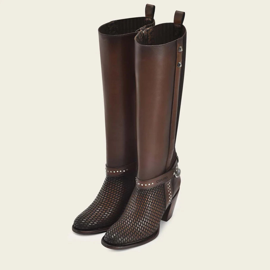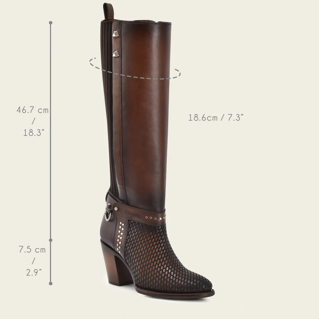 Cuadra brown western cowgirl boots for women. genuine cowhide leather boots for women. Embroided details. Best handmade boots with Goodyear welt construction. Leather lining and nonslip sole. Made in Leon Mexico.