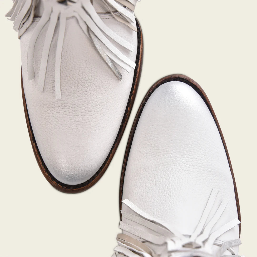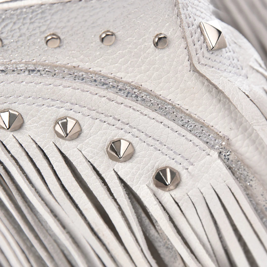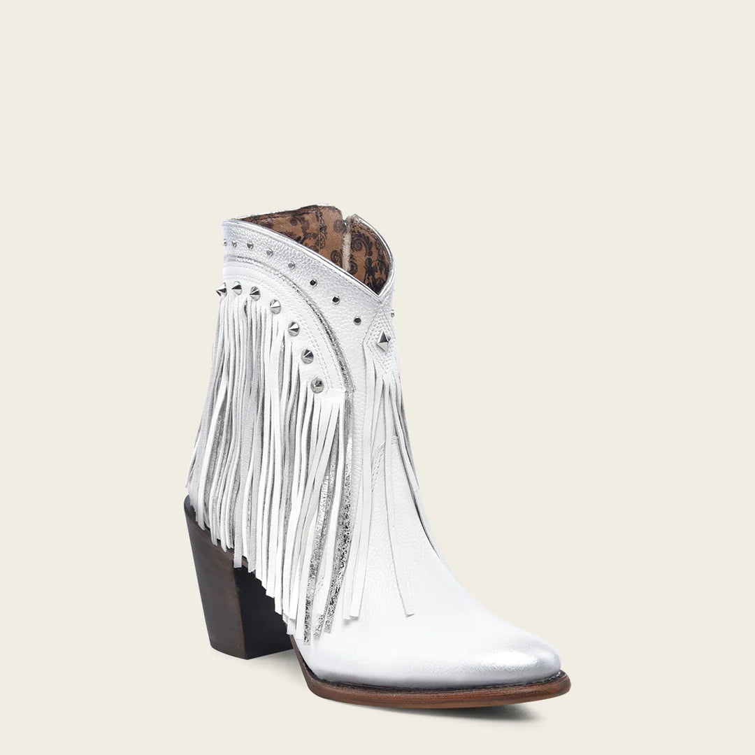 Experience the ultimate in cowgirl chic with these Cuadra white western cowgirl leather boots for women. Made with genuine cowhide leather and featuring exquisite embroidered details, these boots are the epitome of handcrafted excellence. The Goodyear welt construction ensures durability, while the luxurious leather lining and nonslip sole provide unmatched comfort and style. Handmade in Leon Mexico, these boots are adorned with studs and fringes, making them a must-have addition to any stylish wardrobe.