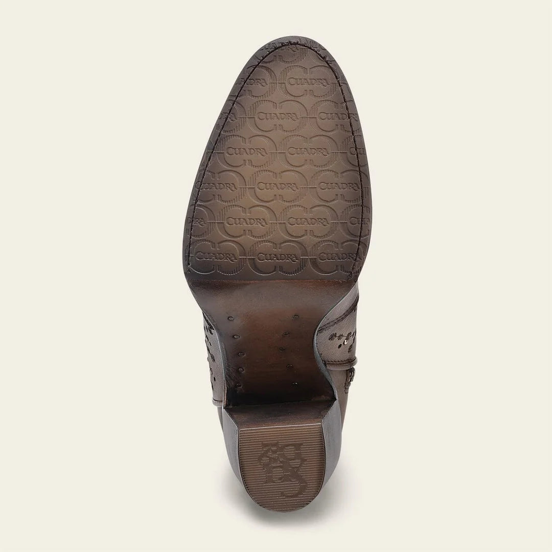 Cuadra almond western cowgirl boots for women. genuine cowhide leather boots for women. Embroided details. Best handmade boots with Goodyear welt construction. Leather lining and nonslip sole. Made in Leon Mexico.