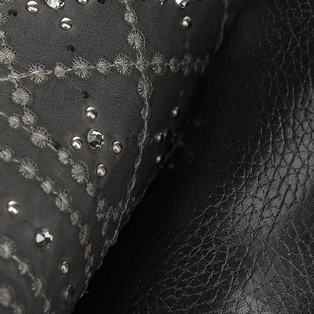 Cuadra black western cowgirl boots for women. genuine cowhide leather boots for women. Embroided details. Best handmade boots with Goodyear welt construction. Leather lining and nonslip sole. Made in Leon Mexico.