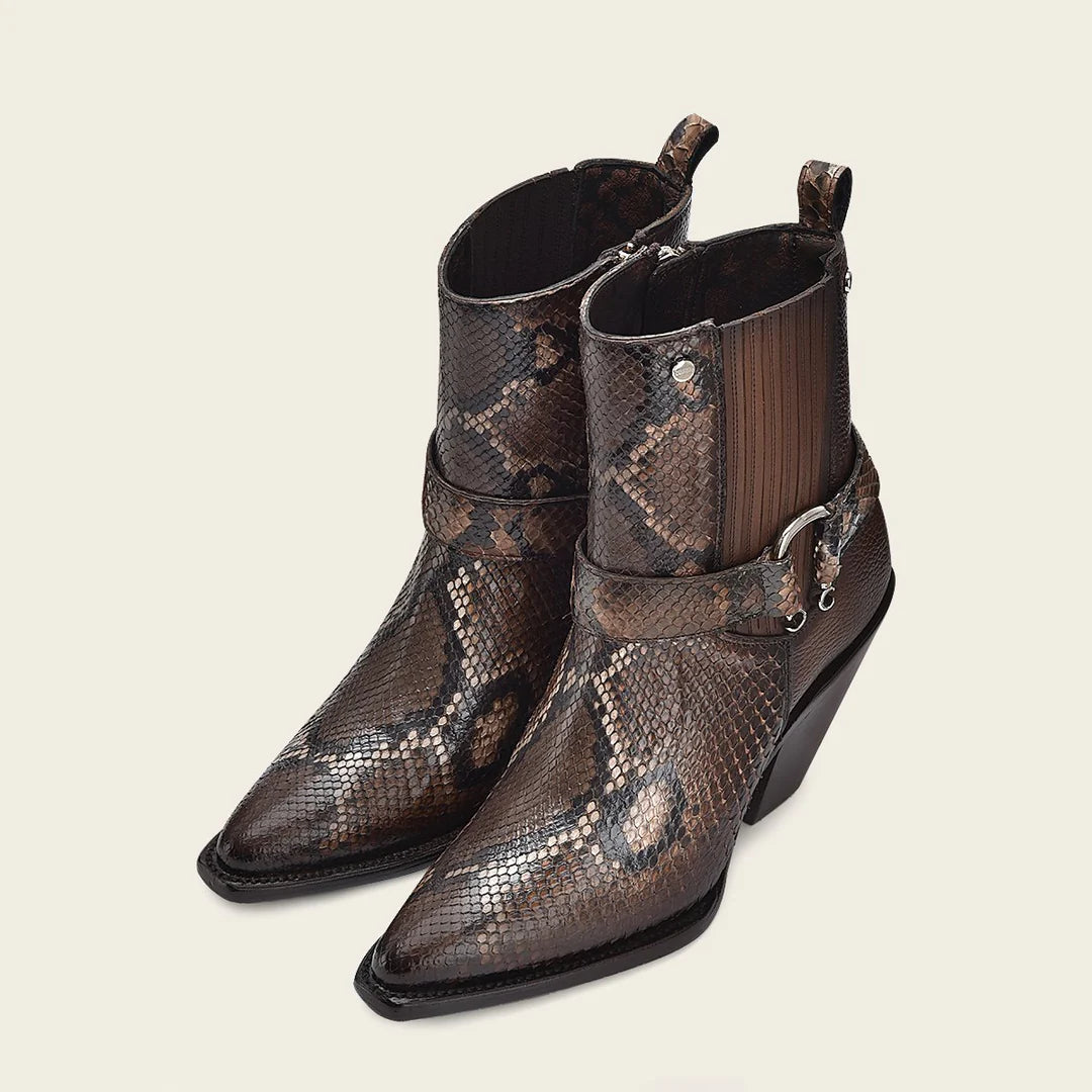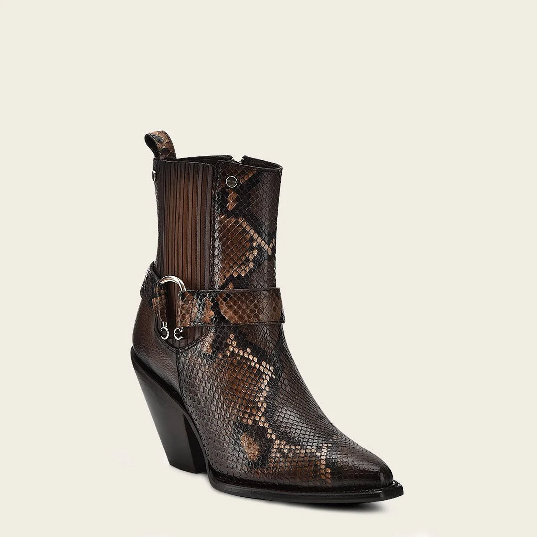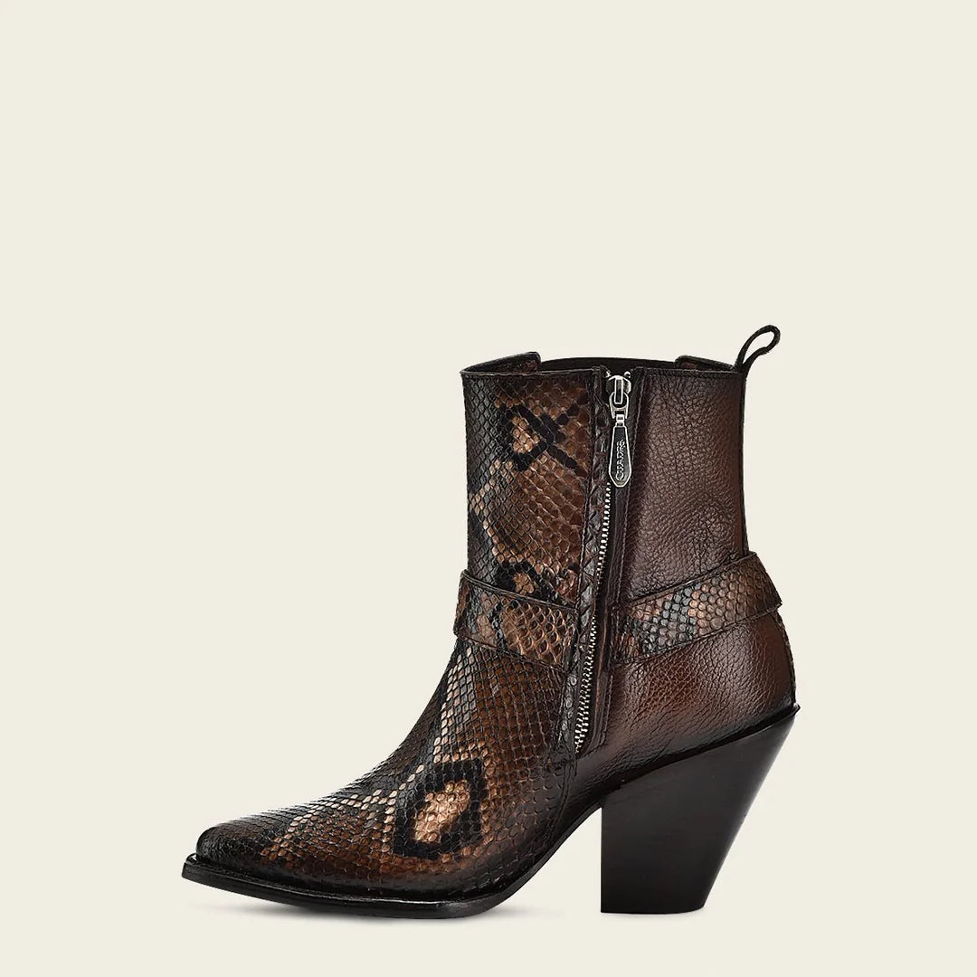 4W02PH - Cuadra brown western cowgirl python leather ankle boots for women