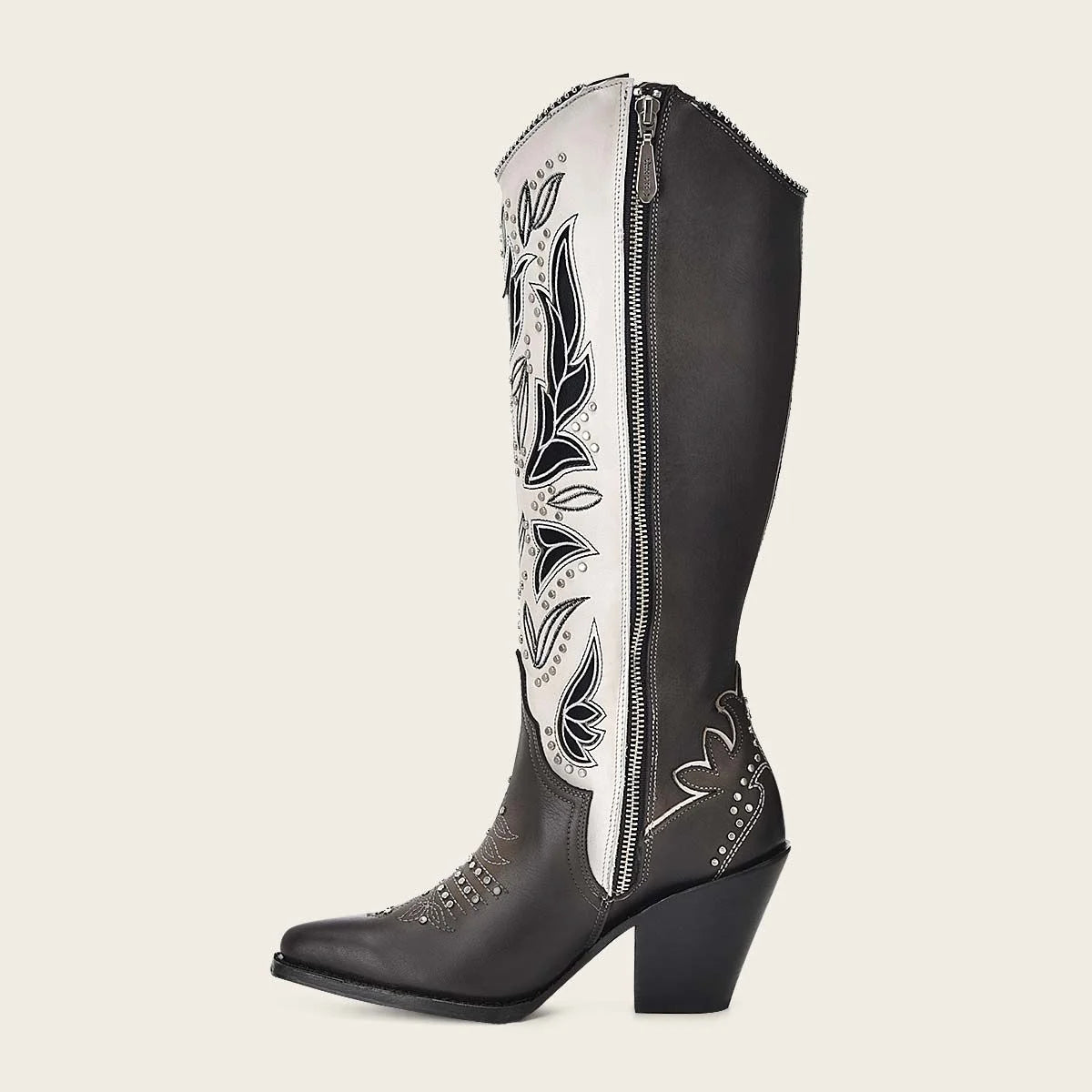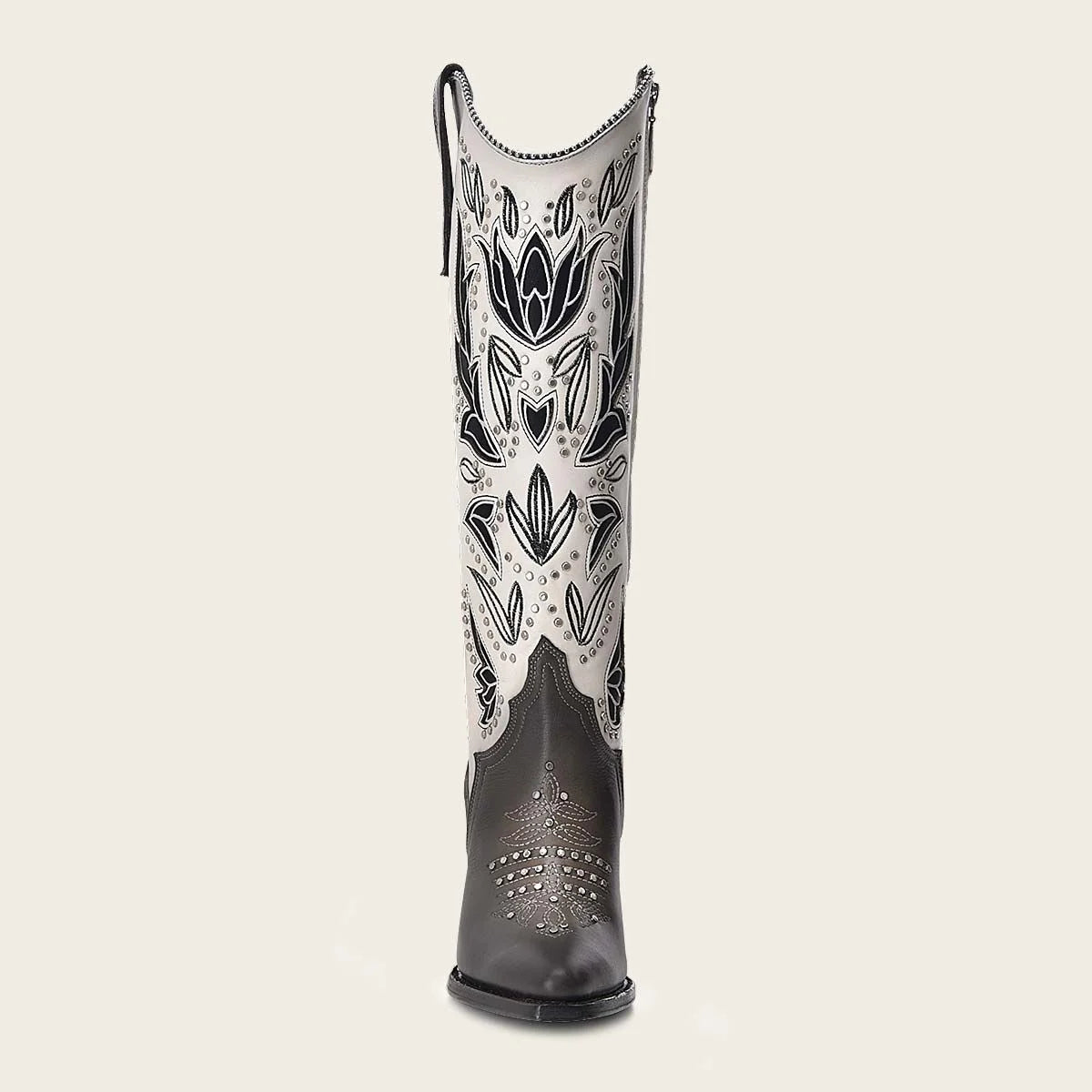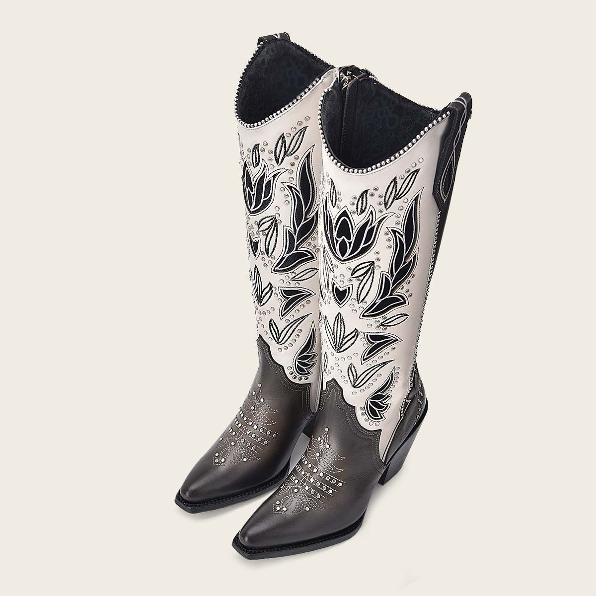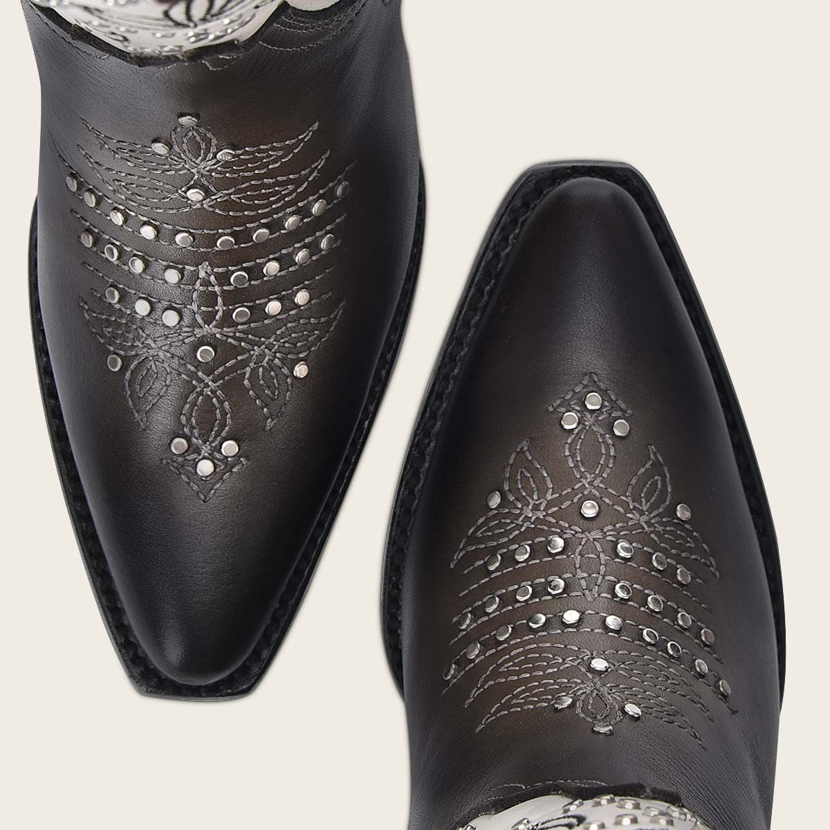 Experience the luxurious comfort and style of Cuadra's oxford western cowgirl cowhide leather ankle boots for women. Handcrafted with genuine cowhide leather and featuring a sleek pointy J toe, these boots are both elegant and durable. The open design adds a touch of edginess, accented with studs for a bold statement. Each pair is carefully constructed with a Goodyear welt technique for exceptional quality and finished with a leather lining and nonslip sole. Made in Leon, Mexico, these boots are truly a masterpiece of craftsmanship.