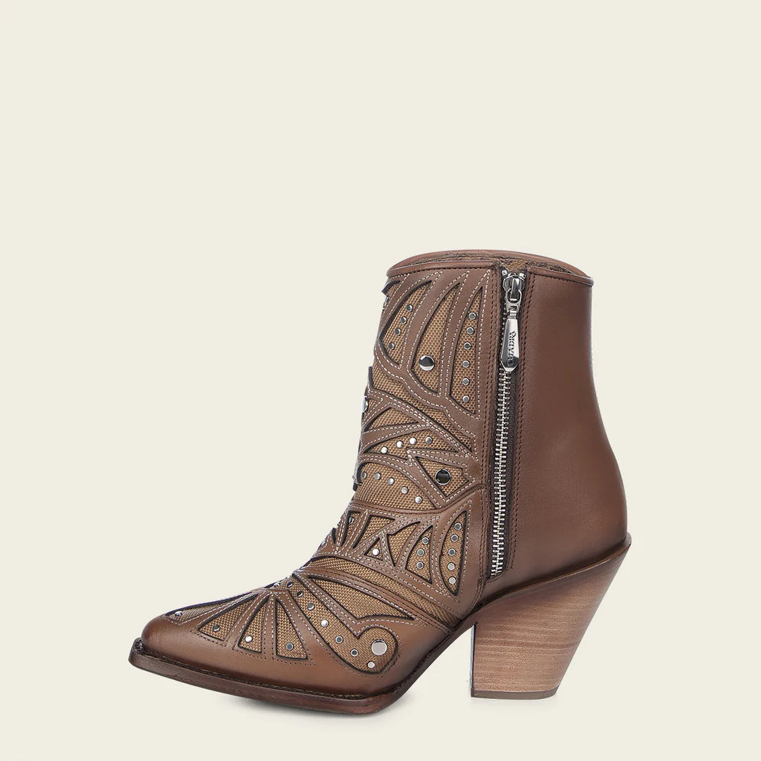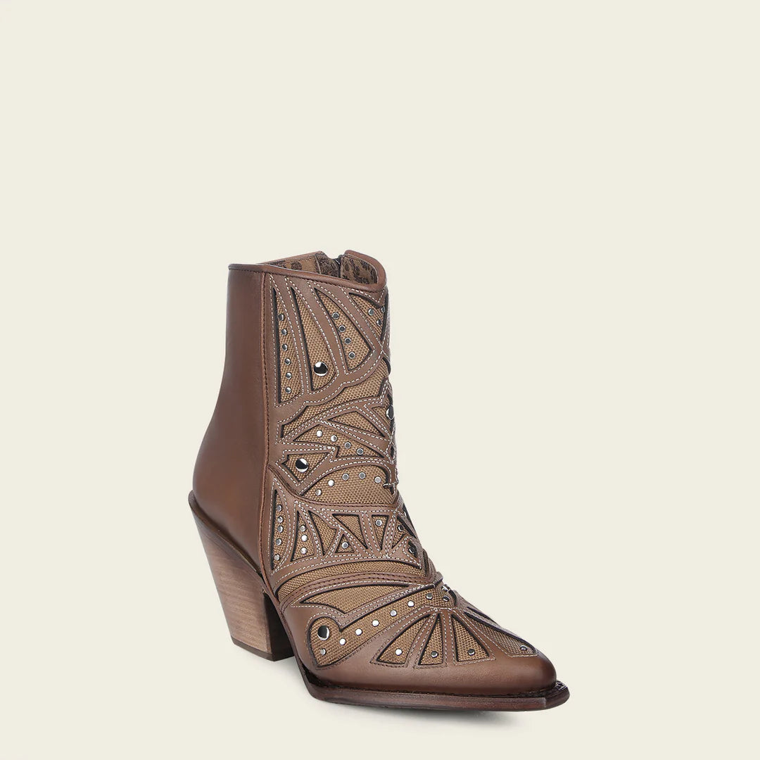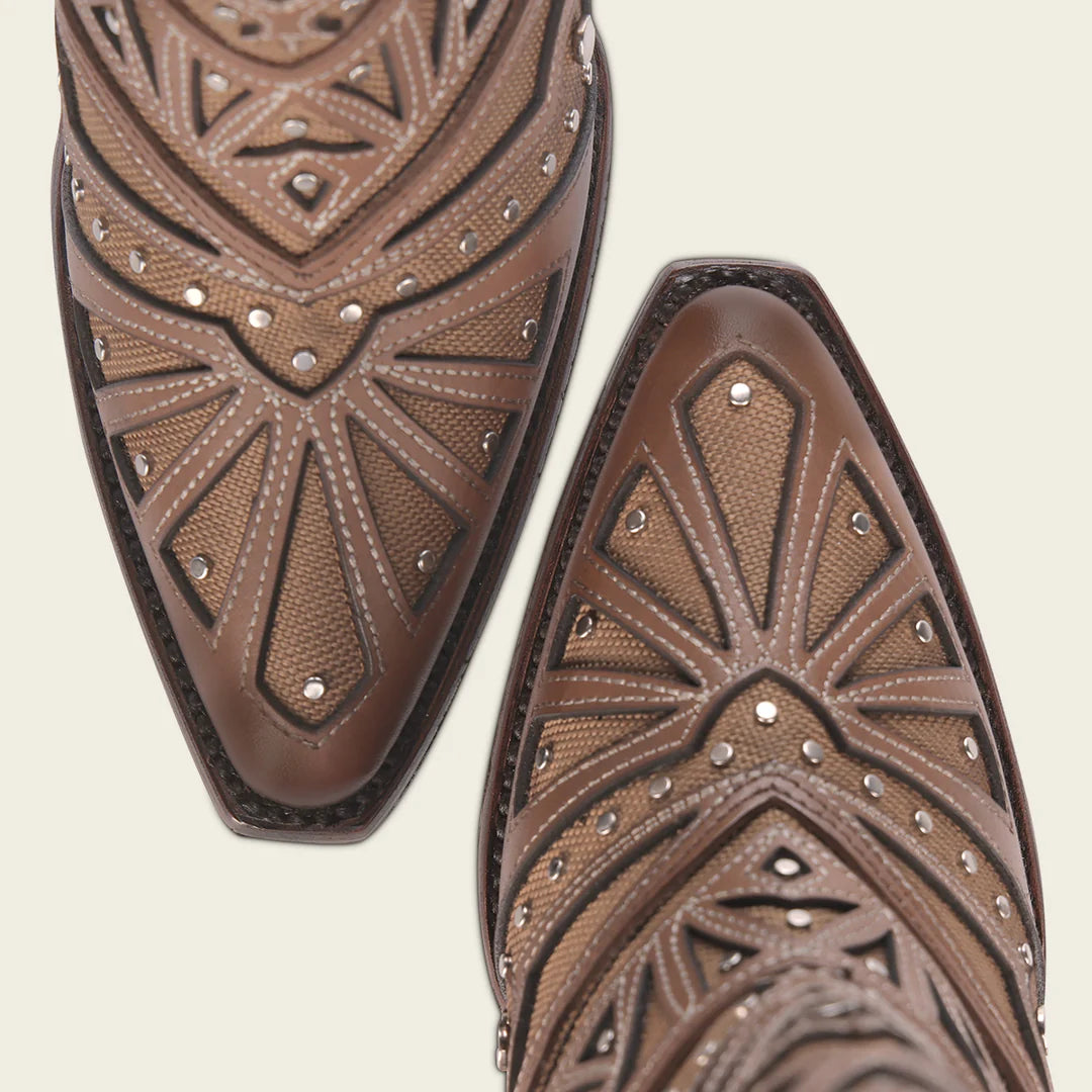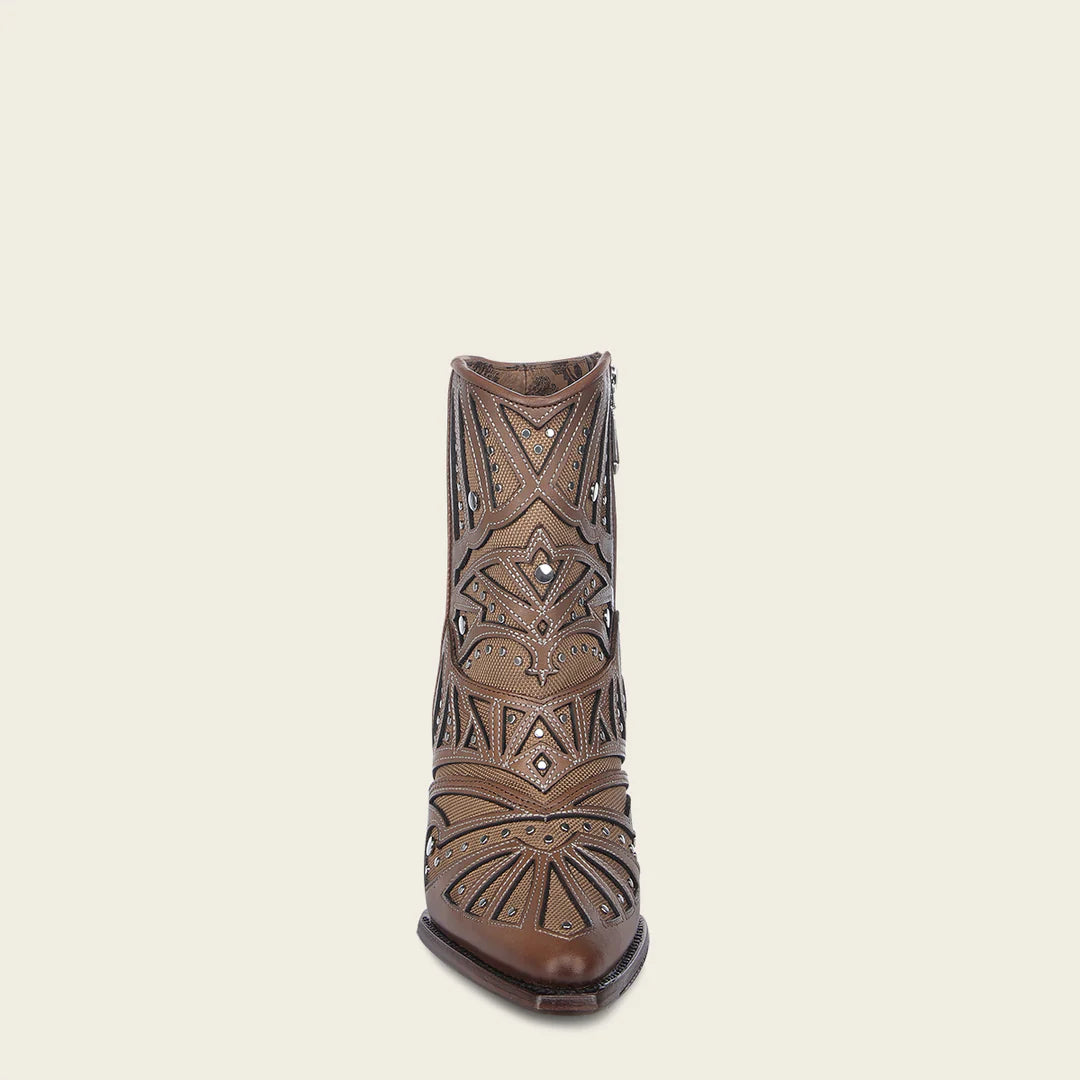 Experience the ultimate in western style with our Cuadra honey cowgirl ankle boots for women! These boots are made from genuine cowhide leather and feature a pointy J toe, open design with studs for added flair. Each pair is expertly crafted with Goodyear welt construction and lined with luxurious leather, ensuring comfort and durability. Take on any terrain with confidence, thanks to the nonslip sole. Handmade in Leon, Mexico, these ankle boots are a must-have addition to your wardrobe.