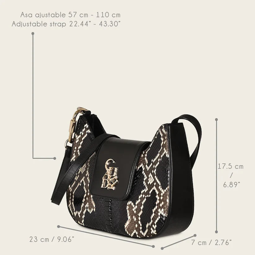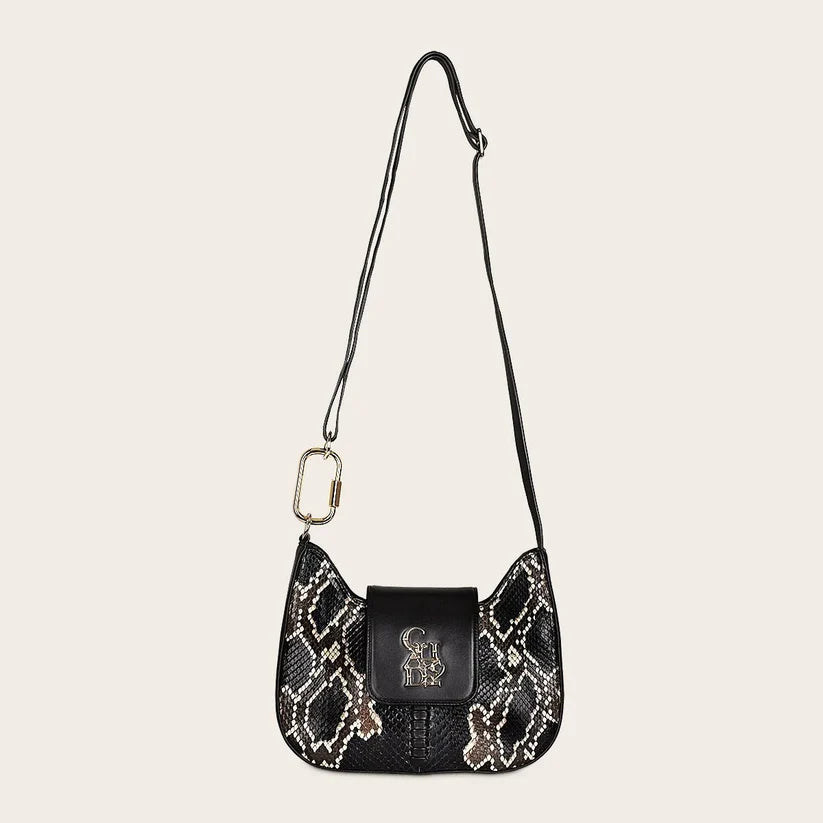 Experience the luxurious elegance of the Cuadra black fashion python crossbody bag for women. Elevate your style with this statement piece, made with genuine python leather. Perfect for any occasion, this bag exudes confidence and sophistication. Upgrade your wardrobe with this must-have accessory now!