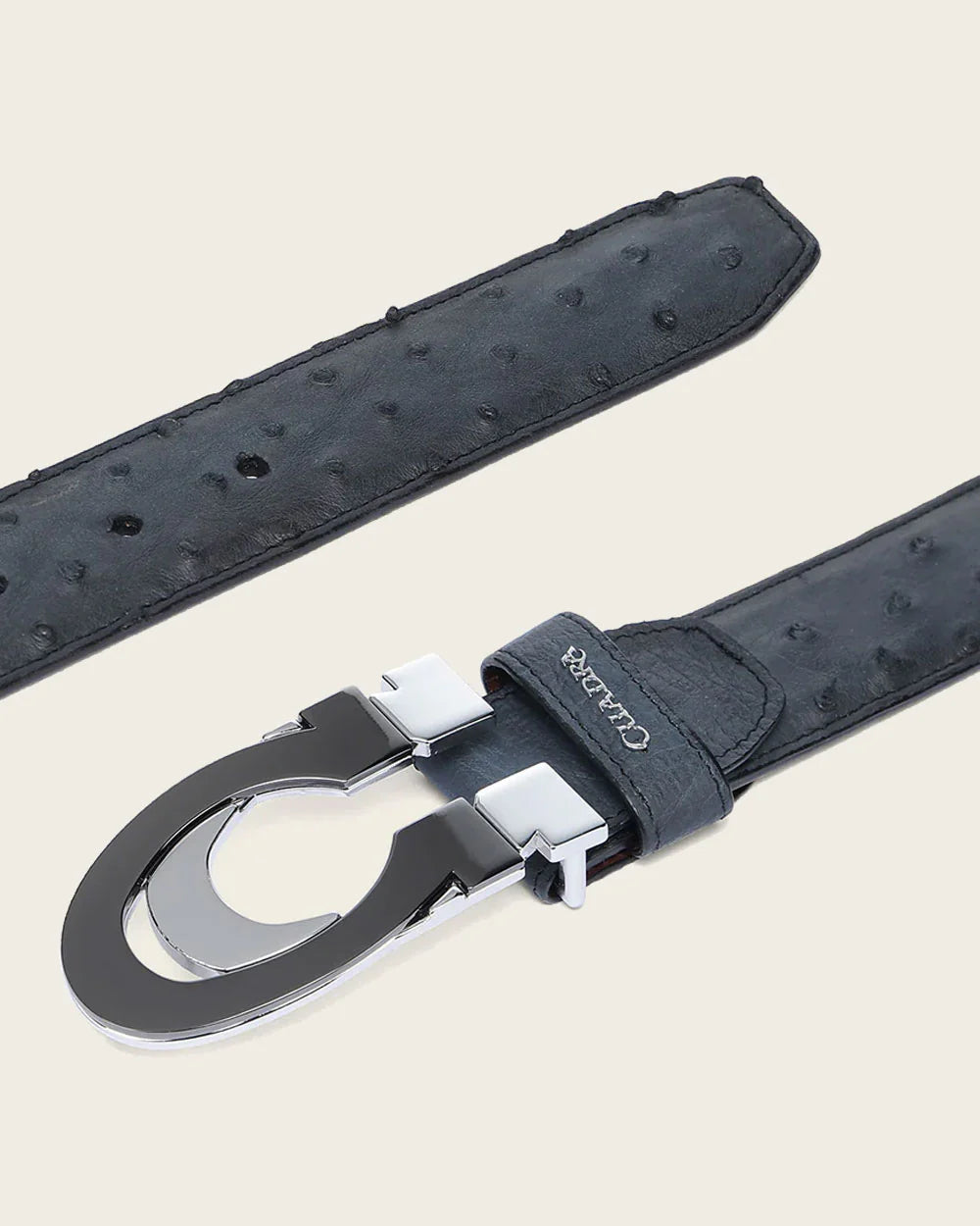 Experience the ultimate in fashion with the Cuadra blue casual ostrich belt for men. This stylish accessory exudes confidence and sophistication, making a statement wherever you go. Elevate your style and show off your unique taste with this must-have fashion item.