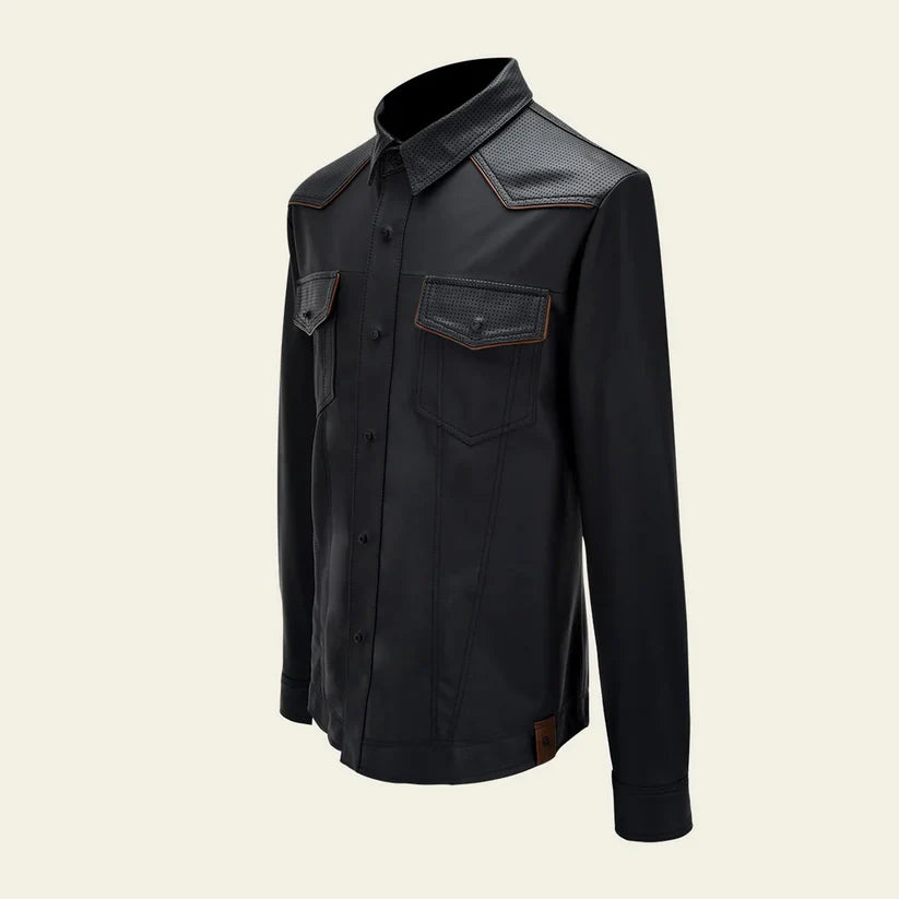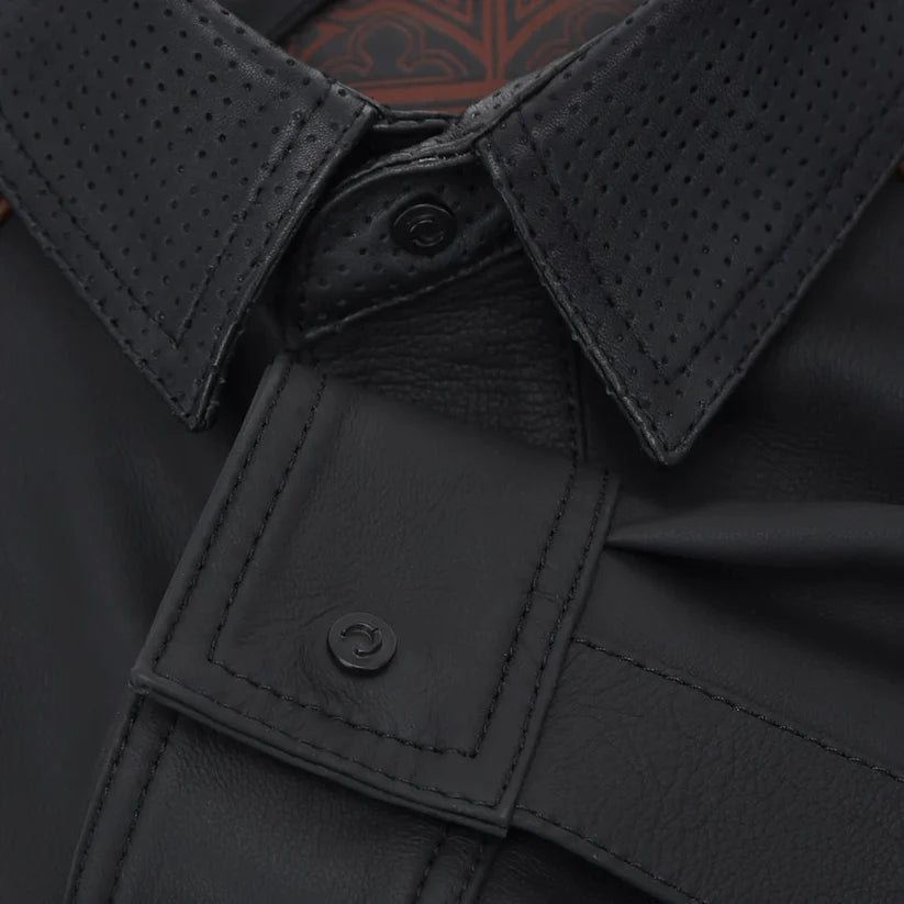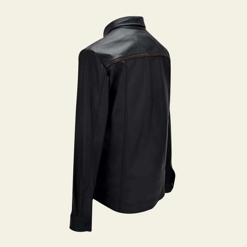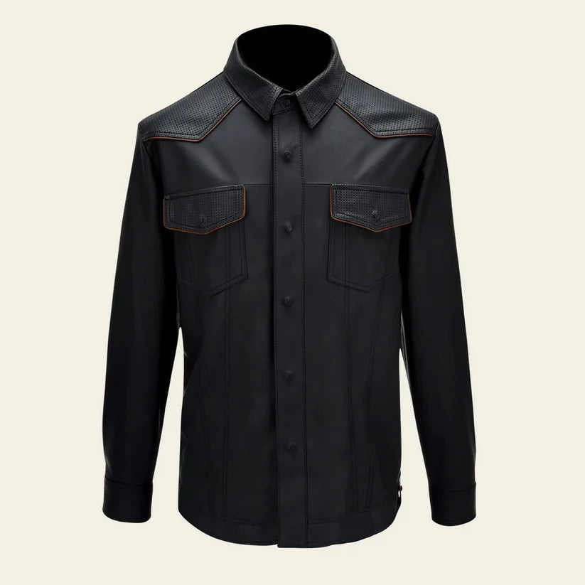 Experience the ultimate in style and comfort with Cuadra's black casual fashion lambskin blouson shirt for men. This modern fit shirt is crafted from supple leather and exudes sophistication in every detail. Elevate your wardrobe with this truly refined and stylish piece.