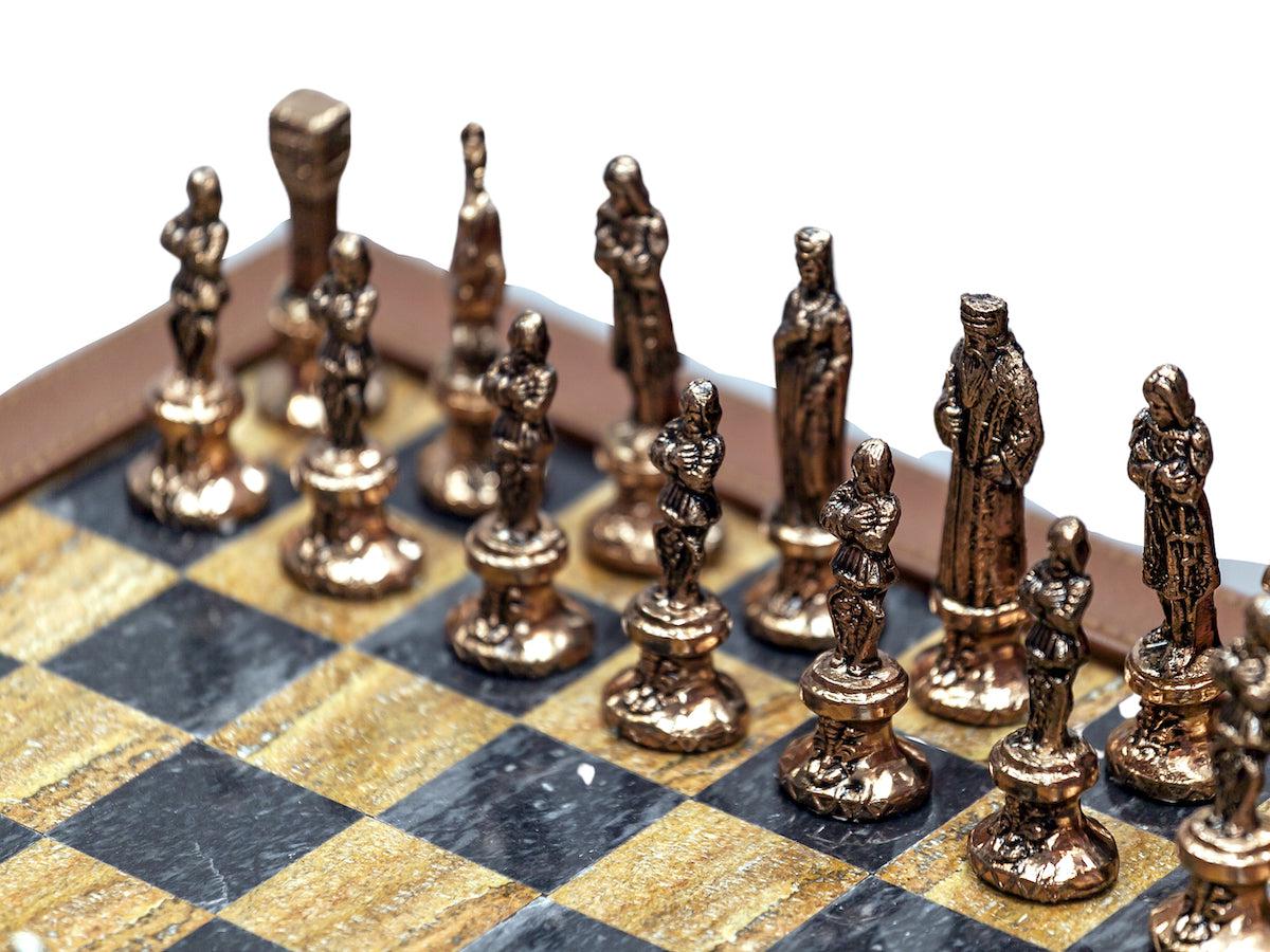 Do you want to play a game? Providing both entertainment and an aesthetic design made from calfskin leather and marble, this chess set is the ideal ice-breaker, rainy-day accomplice and time passer. You won't look back. Features 2 storage drawers also lined in leather. Chessmen are made from solid antimony.